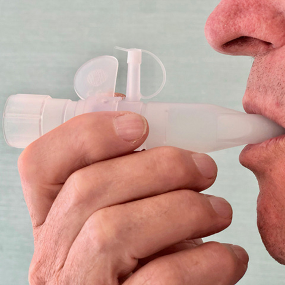 PEP breathing means: exhaling against positive pressure or resistance. “PEP therapy refers to various breathing techniques and respiratory aids which patients can use to exhale against a resistor. A resistor is a form of external resistance that stabilises the bronchial tubes when the patient exhales”, explains the physiotherapist Marlies Ziegler.