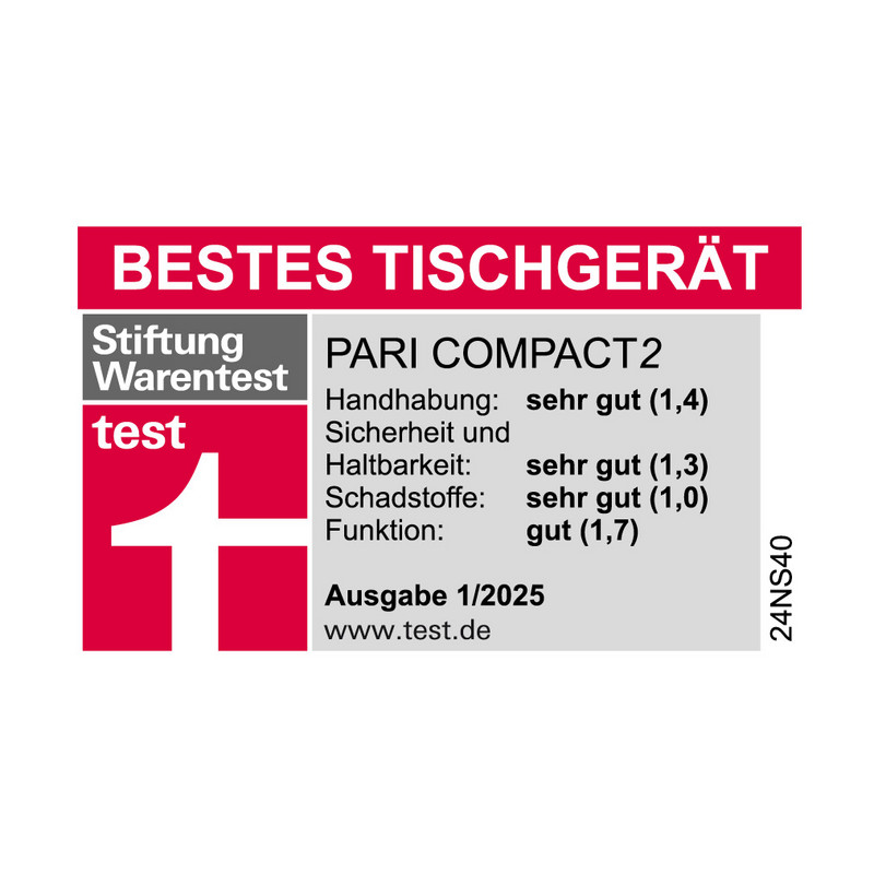 Der PARI COMPACT2 wird von den meisten Krankenkassen vollständig erstattet. Das bedeutet: Bei Verordnung auf Rezept keine Aufzahlung.