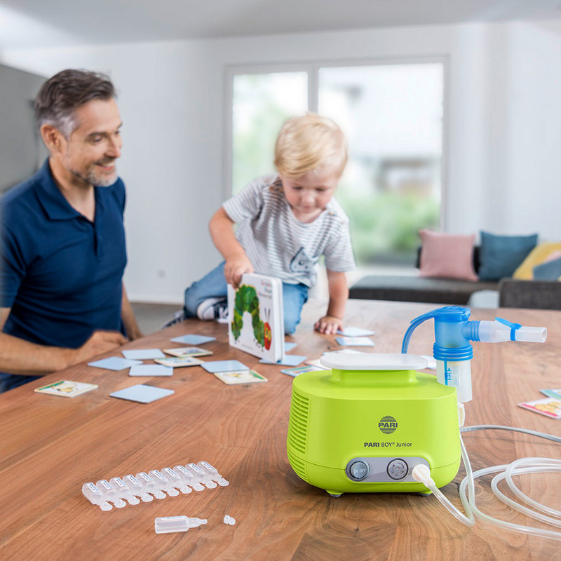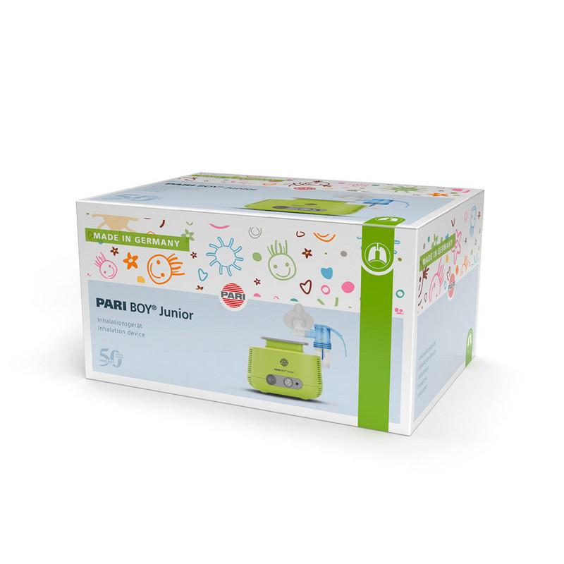 Nebuliser system designed for aerosol therapy in babies and toddlers, featuring a variable droplet spectrum to support age-appropriate aerosol deposition, even in very small airways. The PARI BOY Junior is intended for the nebulisation of saline solutions and medications approved for nebulisation and is specifically designed to meet the needs of the youngest users.