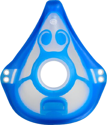 安全なポリプロピレンとサーモプラスチックエラストマー(TPE)を使用したソフトマスクは、皮膚に接する部分がやわらかく、お顔にやさしくフィット。マスクに組み込まれた呼気バルブとマスク内側の漏れを防ぐシールドによって、エアロゾルの無駄をおさえます。
