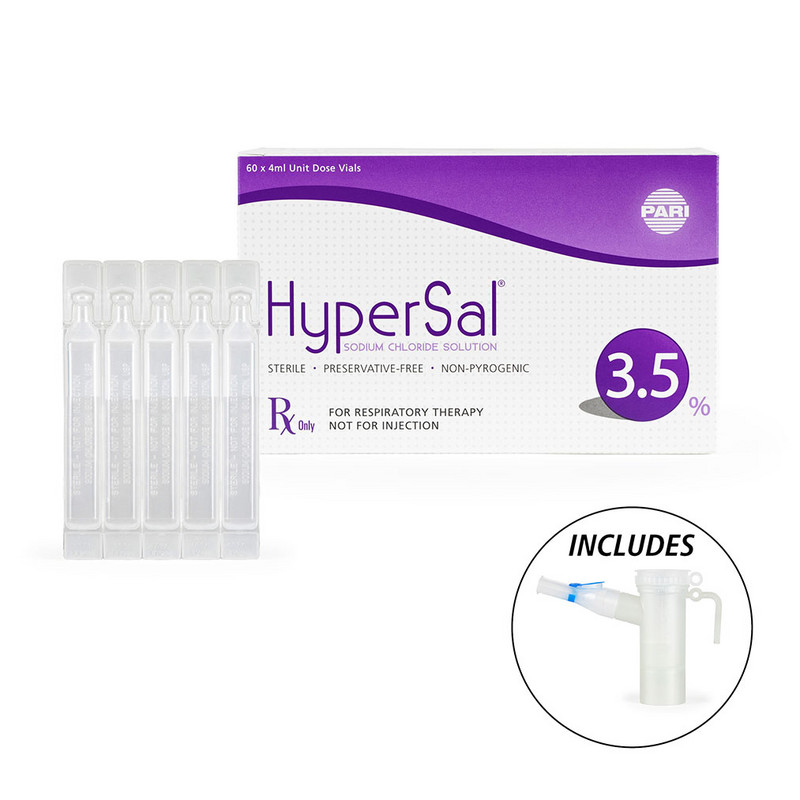 PARI HyperSal® Sodium Chloride Inhalation Solution is a sterile, preservative-free solution available in both 3.5% and 7% strengths. Each box of HyperSal contains 60 4mL vials and a PARI LC PLUS® reusable nebulizer